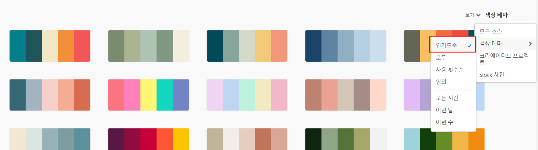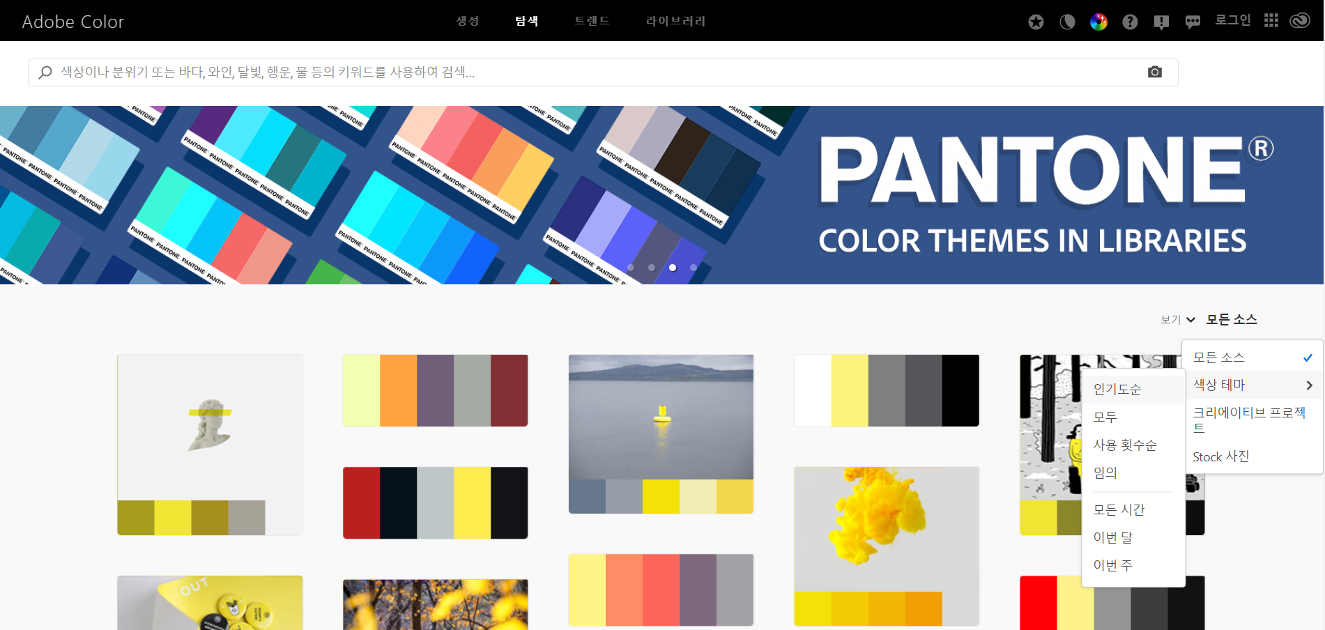 탐색 기능을 활용하면 다양한 팔레트들을 필터를 걸어 검색할 수 있습니다.