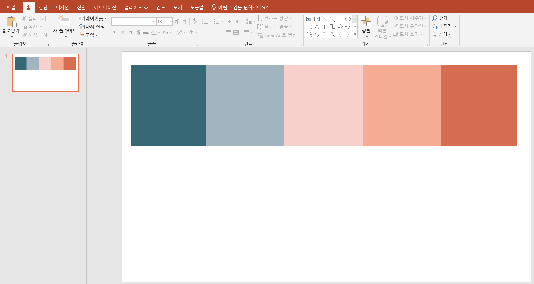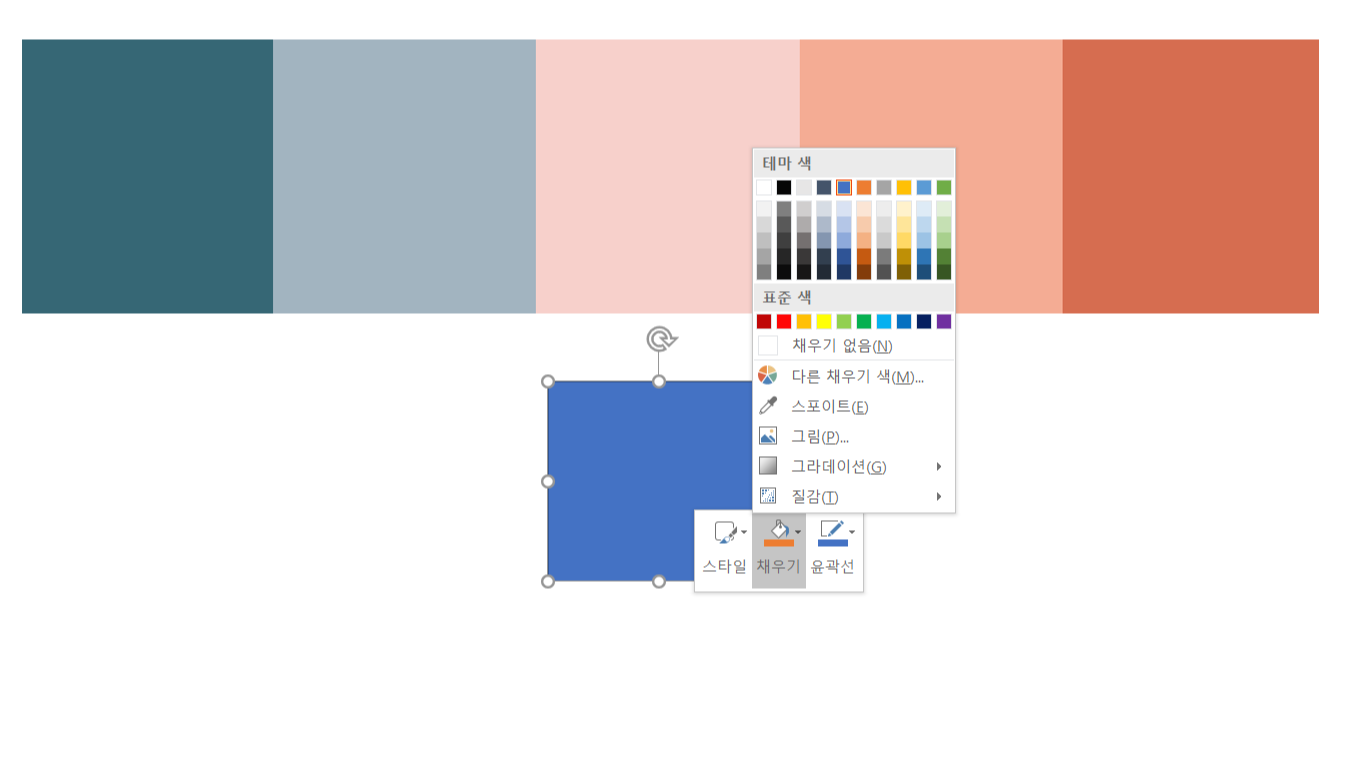 이렇게 얻어낸 팔레트는 피피티에 복사하거나 불러와서 쓰면 편하게 작업할 수 있어요.